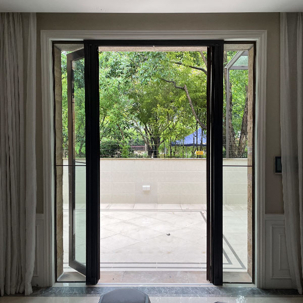 A real bottomless track screen door, perfectly adapted to the entry door without threshold, lifting and sliding doors to achieve barrier-free passage.